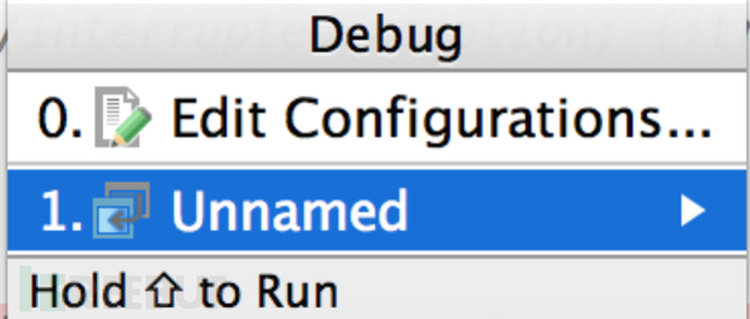 10.找到相应位置设置断点(在想设断点的位置前后多设置几个断点),点击run->debug->unnamed,其中unnamed是第9步中新建的远程调试的名字;