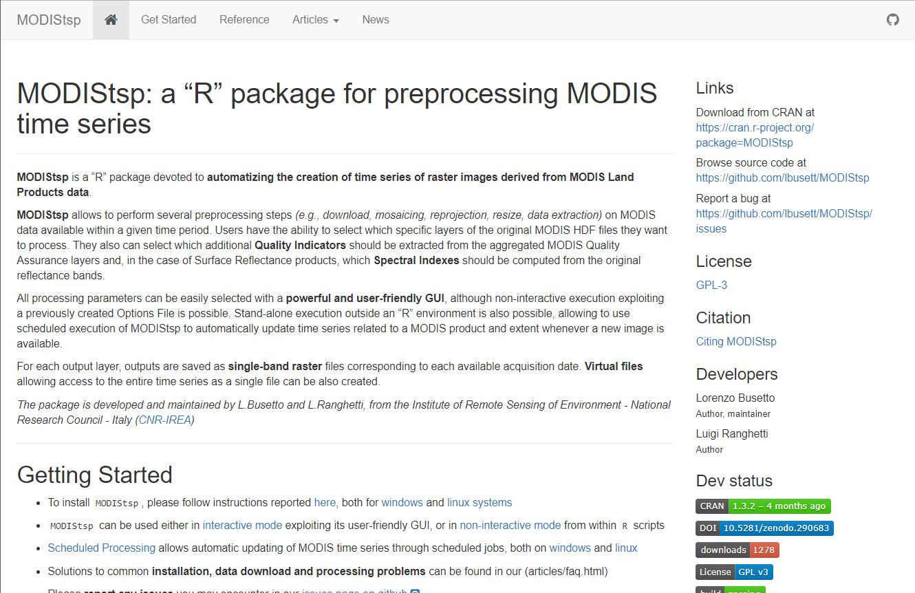 Below, you can see how the .yaml file described before and the other small "tweaks" improved the appearance of MODIStsp homepage :