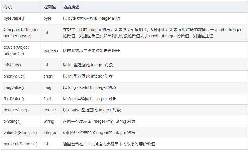 下面列举一下 Integer 的常用方法
