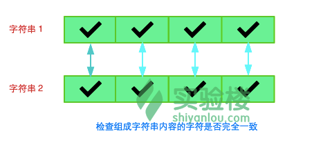 equals() 方法比较是通过第一字符开始,一个字符一个字符依次比较。