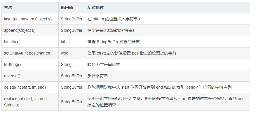 StringBuffer类的常用方法: