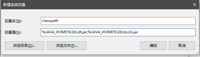 4.新建环境变量classpath,写入%JAVA_HOME%\lib\dt.jar;%JAVA_HOME%\lib\tools.jar: