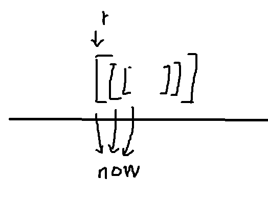 然后我在看题解的时候发现了更好的做法,思路和我上面说的一样,但是人家是边读入边完成的工作,也就是说,省去了用find()一个个查找[]区间并且反复更新now和r这些繁琐的步骤,这里就贴别人的优秀代码了,我自己那个奇丑无比的就不拿出来献丑了