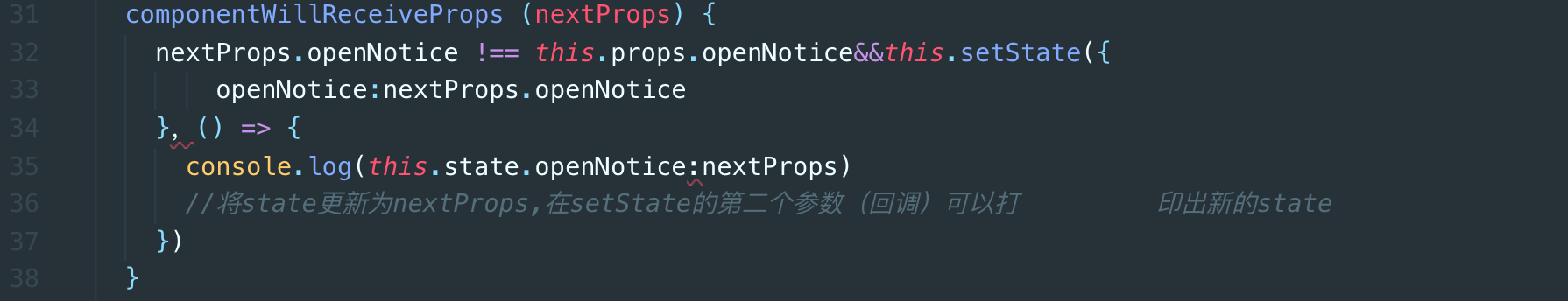 通过对比nextProps和this.props,将nextProps的state为当前组件的state,从而重新渲染组件