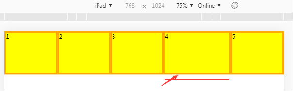 .item{flex-shrink:<number>;/*default:1*/} .box{ box-sizing: border-box; width: 150px; height: 150px; background-color: yellow; border:5px solid orange; font-size: 20px; flex-shrink: 1; } .box4{ width: 200px; } 如下,空间不足了,宽度缩小时,会等比例缩小