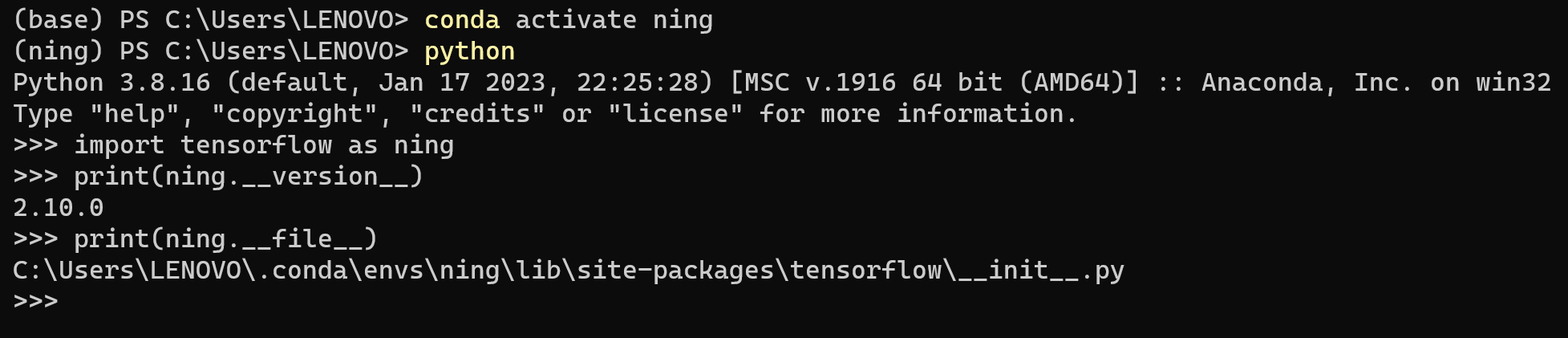 把下载好的压缩包解压把里面的tensorflow下的examples文件夹直接复制到我们刚刚找到的环境路径中C:\Users\LENOVO\.conda\envs\ning\lib\site-packages\tensorflow。