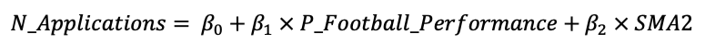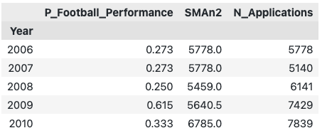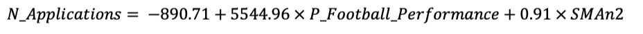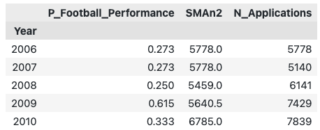 为了使用该方程式来预测2022年MSU的申请数量,MSU需要把2022年的P_Football_performance和SMAn2属性放在一起。这里,我们介绍一下寻找这些数值的过程。