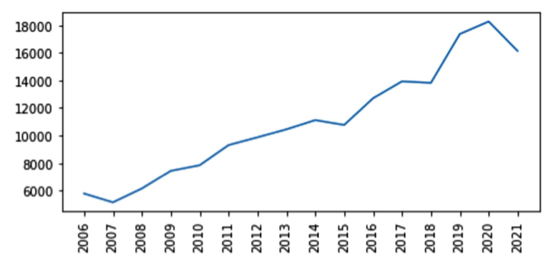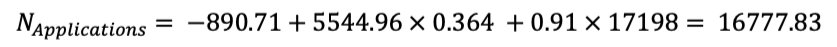 • SMAn2。2021年和2020年的N_Applications值分别为18,269和16,127。这些数字的平均值是17,198。 下面是预测2022年的N_Applications值的计算。