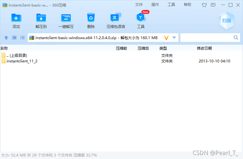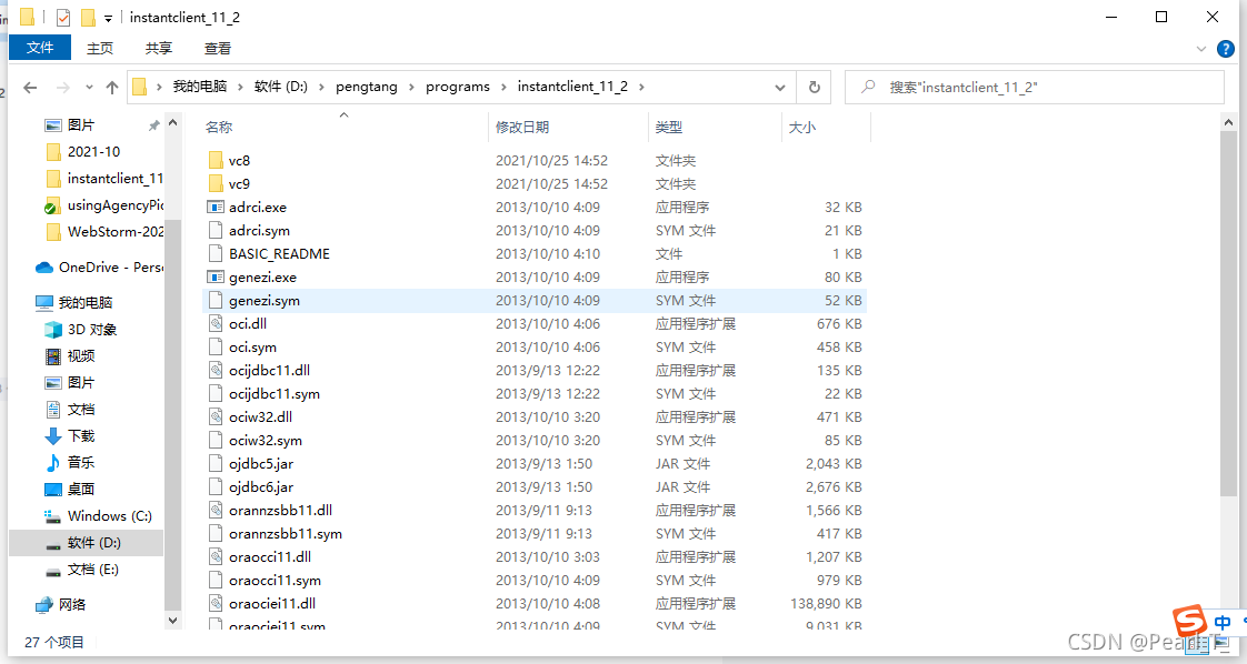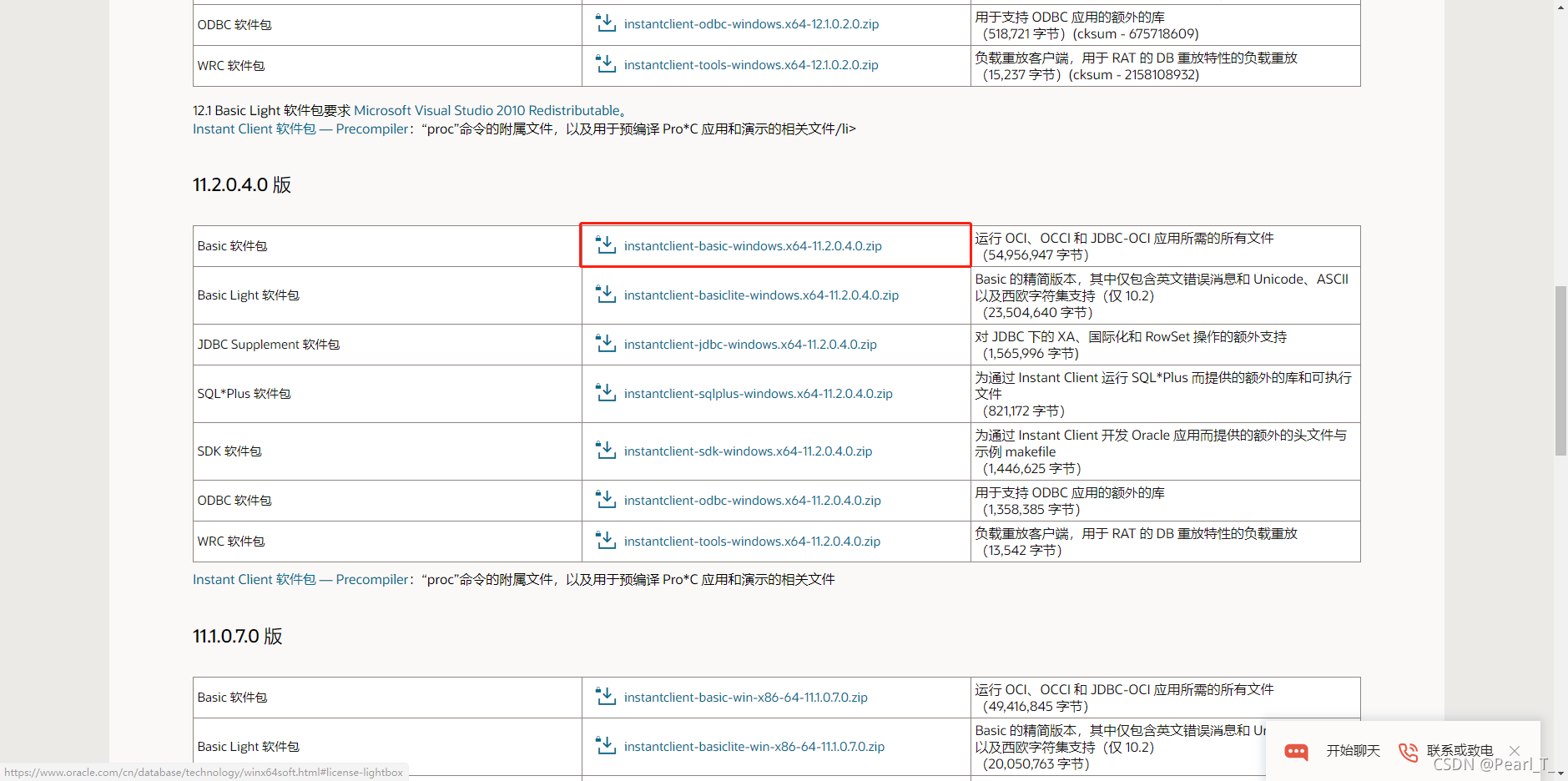 此处选择版本位11g,根据连接服务器选择,解压包下载后如下: