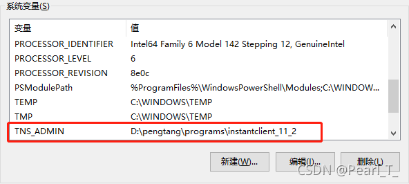 2) 变量名:TNS_ADMIN 变量值:D:\pengtang\programs\instantclient_11_2