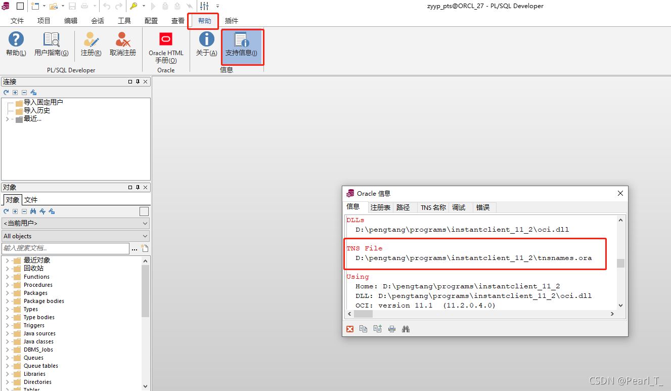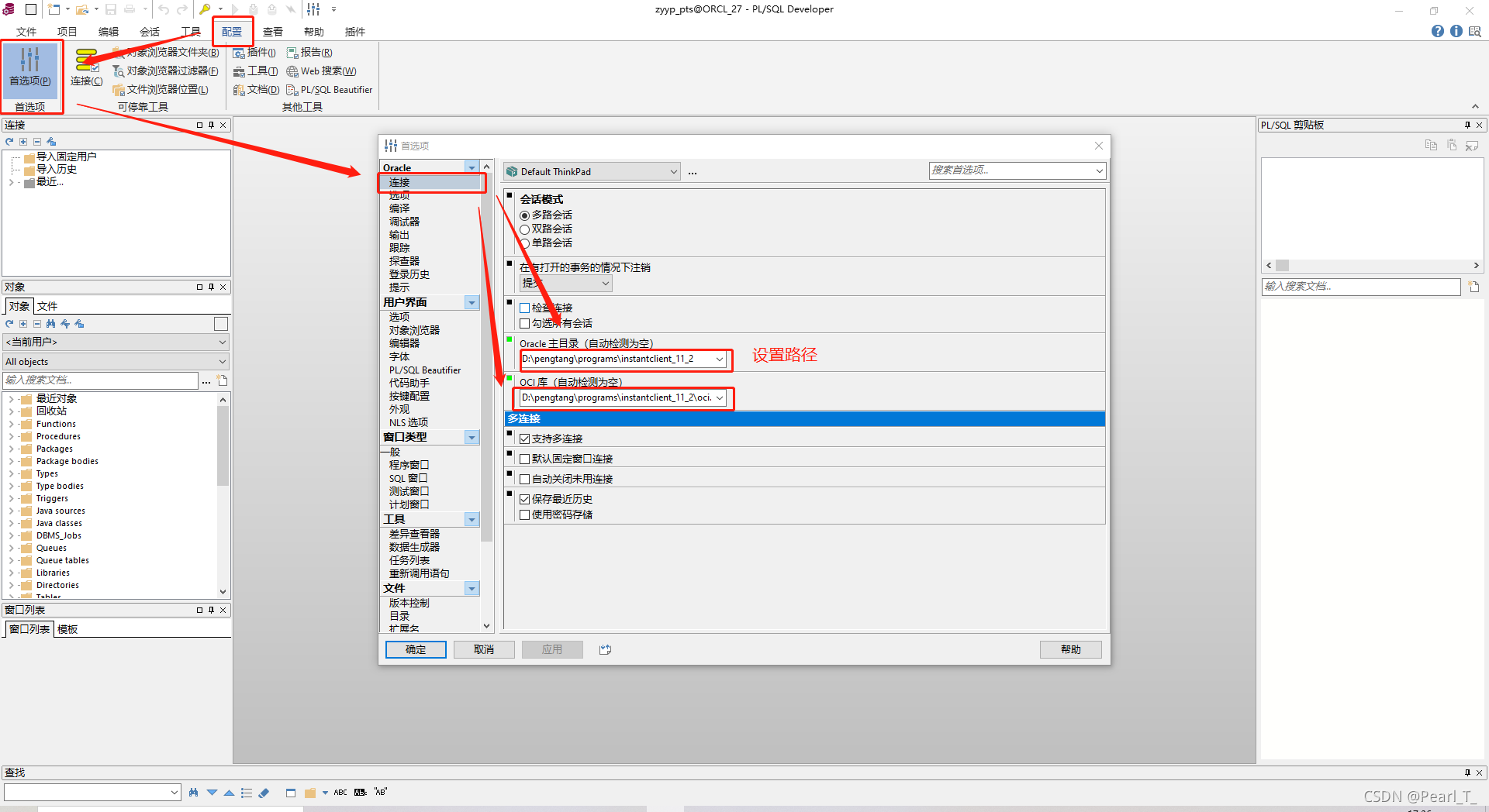 进入plsql,根据oracle客户端安装路径配置ORACLE主目录以及OCI库
