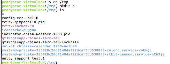 (5)进入/tmp目录,创建一个名为a的目录,并查看有多少目录存在
