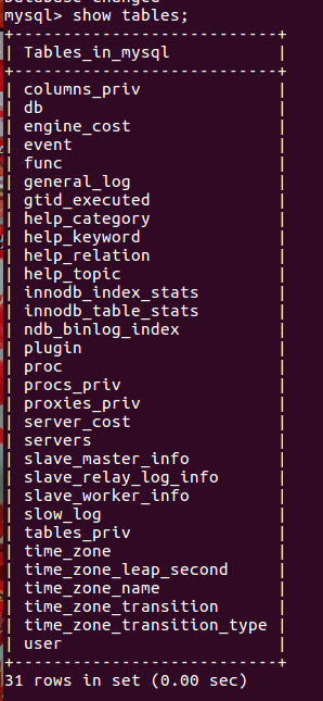 (30)显示某一个表格内的具体内容:select *form 表格名;