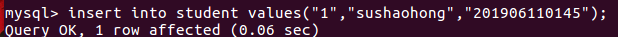 (33)向表格student中插入具体内容:insert into 表格名(名)values(value);