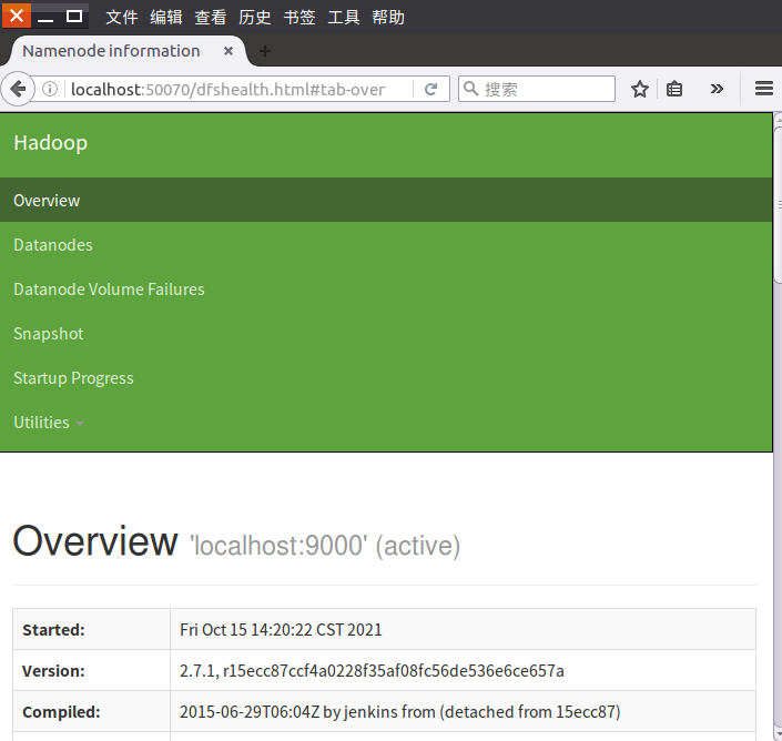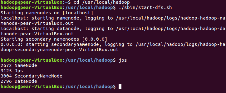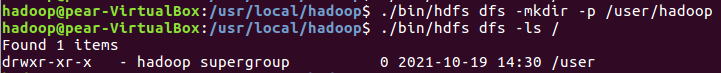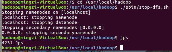 36.设置Hadoop环境变量,在本地用户主目录下启动hdfs,查看hdfs用户主目录,停止hdfs。