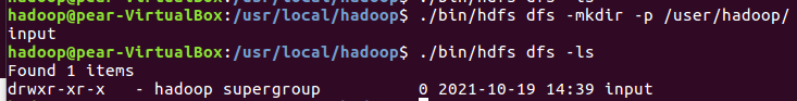 4.将hadoop的配置文件上传到hdfs上的input目录下。