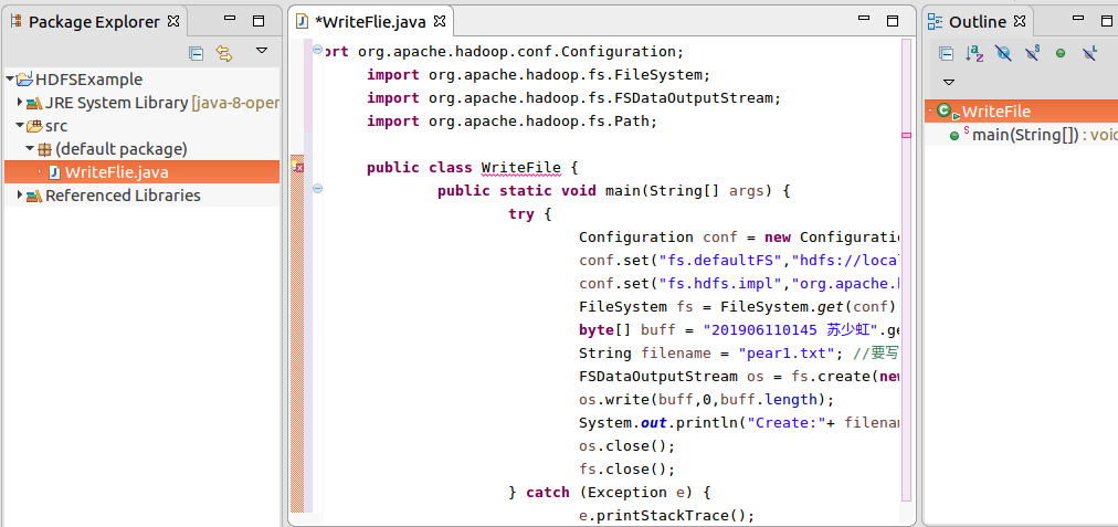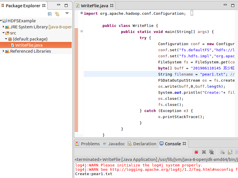 二、利用hadoop 的java api,向HDFS写一个文件。