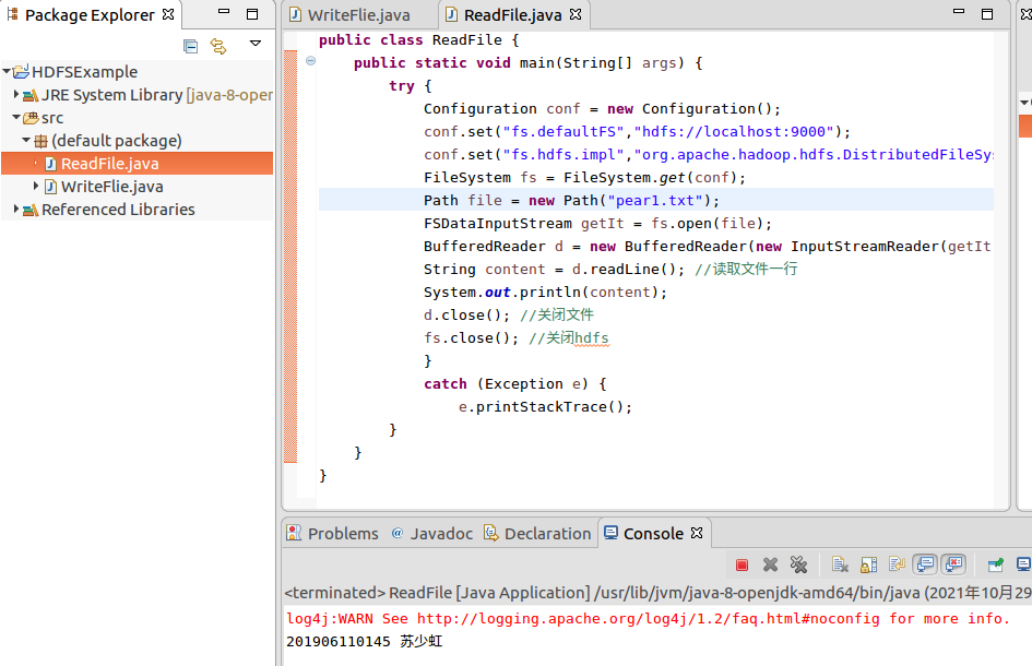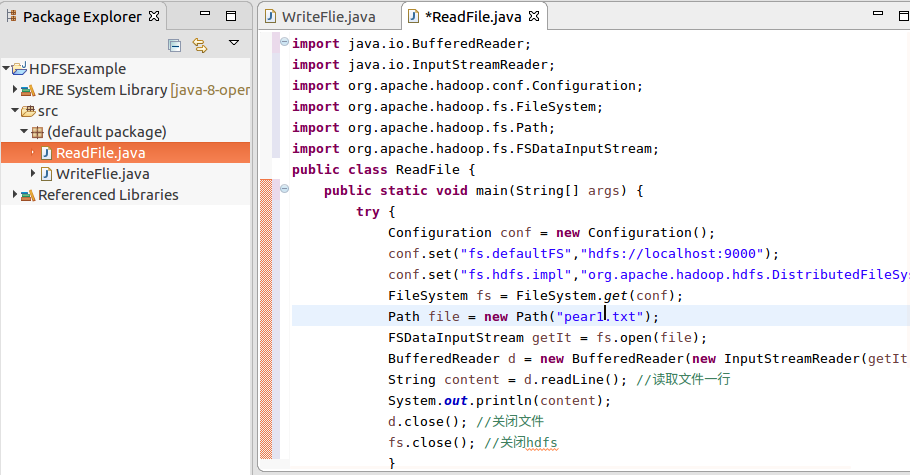 运行readflie.java,显示pear1.txt文件内容