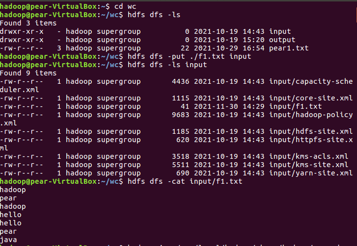 之前已经将f1.txt上传至input中,f1.txt如下![]()