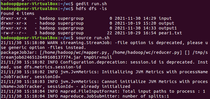 - 查看hadoop-streaming的jar文件位置:/usr/local/hadoop/share/hadoop/tools/lib/