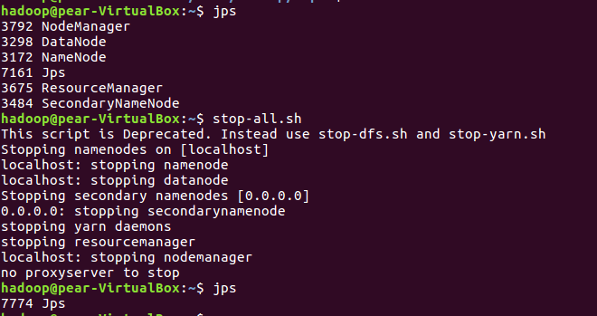 - 停止HDFS与YARN