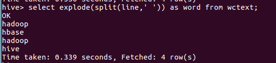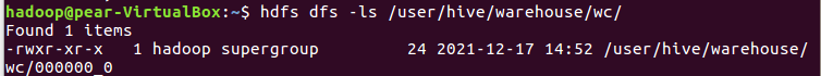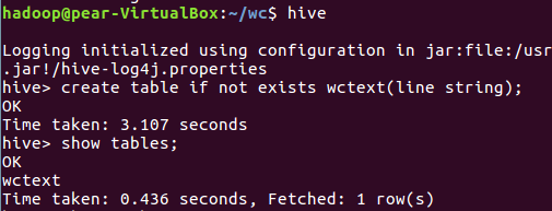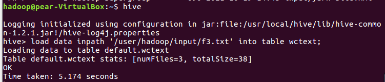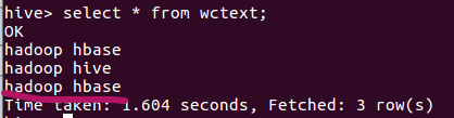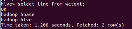 - 从hdfs导入文件内容到表wctext, 并查看hdfs源文件,hdfs数据库文件