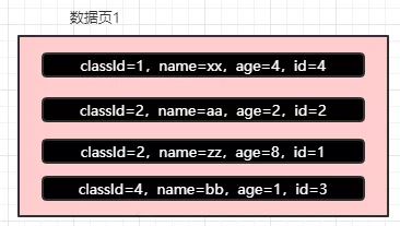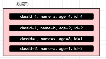 根据上面说的(classId,name,age)联合索引他们是这样子保存在数据页中的。
