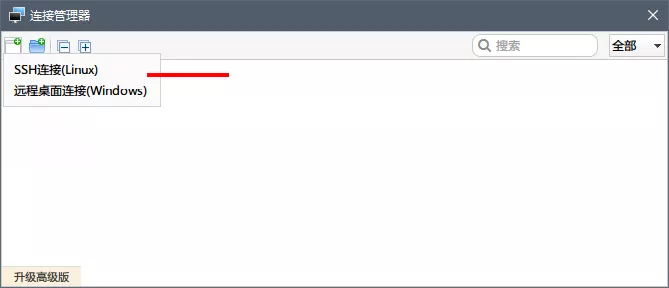 然后,出现如图所示的功能菜单,可以连接linux服务器和windows远程桌面,这里我们先点击linux服务器