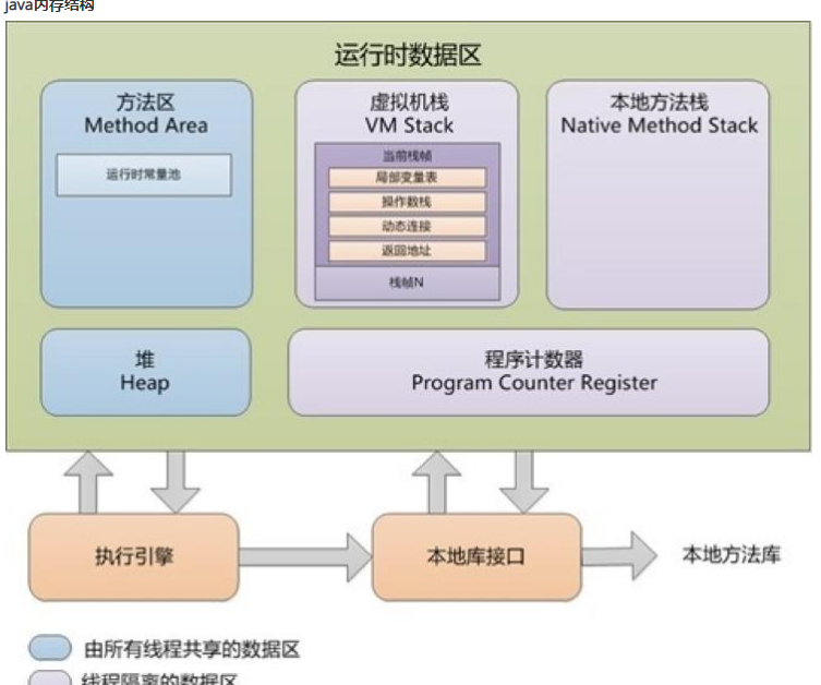 jvm内存包括:堆、方法区;栈、程序计数器、本地方法栈