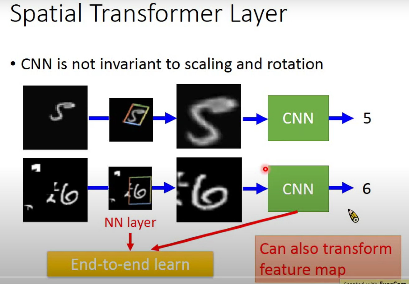 Spatial Transformer Layer能够帮助我们对图像进行缩放和旋转,它可以作用与原始图像,也可以作用于Feature Map