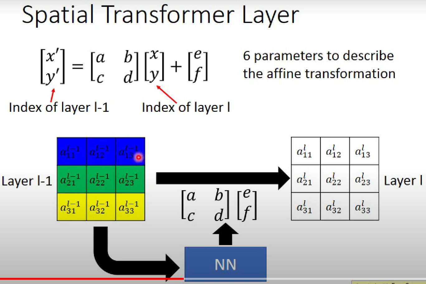 Spatial Transformer Layer在做的事情其实是控制输入图像和输出图像之间的连接方式