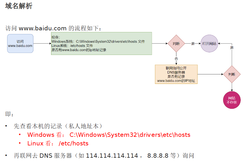 查找顺序:先通过系统本地的记录去查找,如果找不到就联网去公开的DNS服务器去查找!
