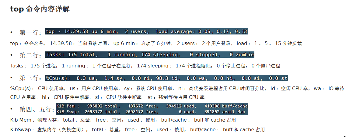 A. 查看系统资源占用(top)