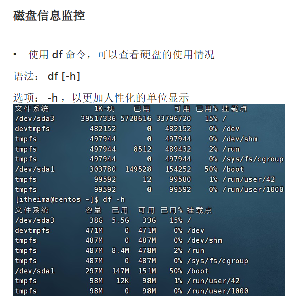 B. 磁盘信息监控(df、iostat)