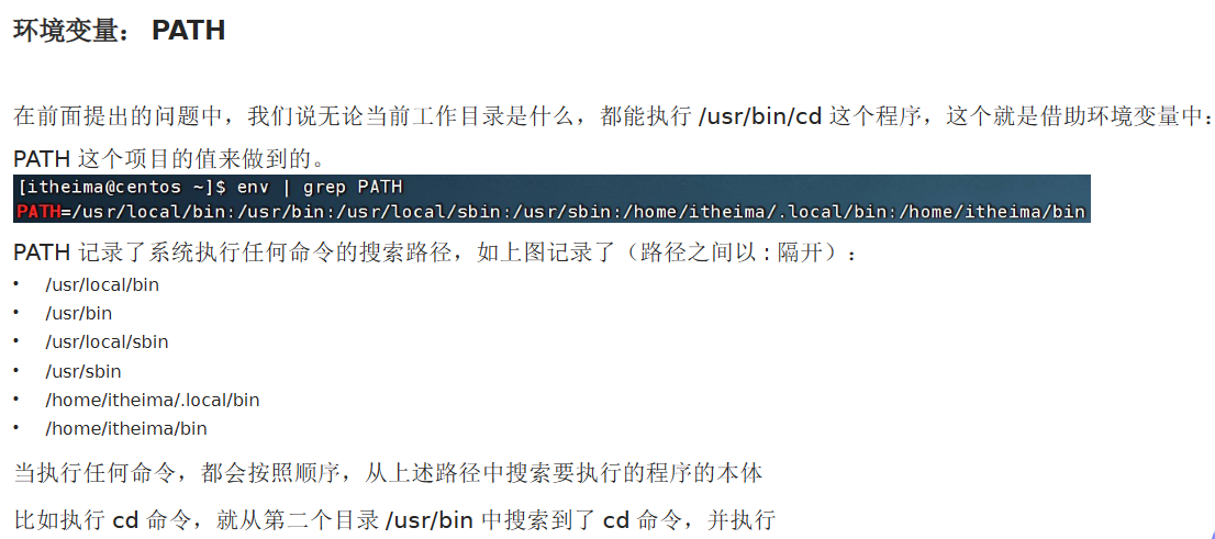 cd命令的本体为:/usr/bin/cd这个程序文件,但是无论我们当前的工作目录在哪里,都能执行cd这个程序,这就是环境变量的作用。