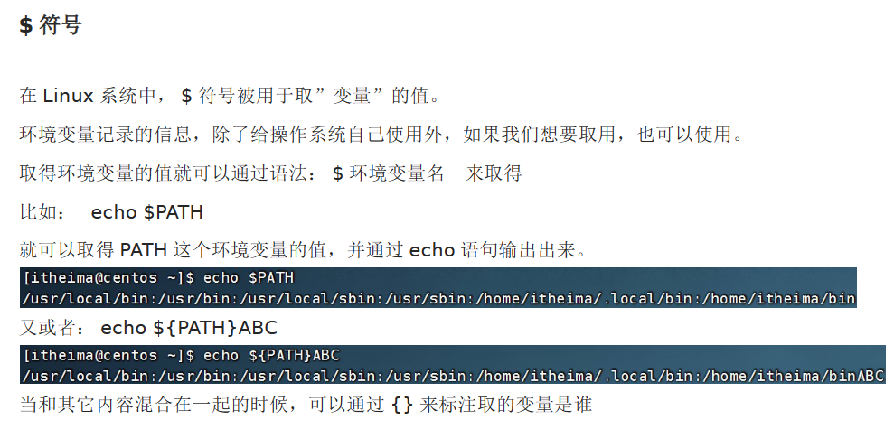 $符号可以用于取变量的值,即通过语法:$ 环境变量名