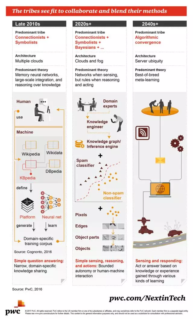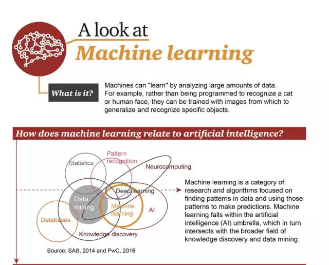 - 但你了解现在正在发生的这场变革吗?四大会计师事务所之一的普华永道(PwC)近日发布了多份解读机器学习基础的图表,其中介绍了机器学习的基本概念、原理、历史、未来趋势和一些常见的算法。为便于读者阅读,机器之心对这些图表进行了编译和拆分,分三大部分对这些内容进行了呈现,希望能帮助你进一步阅读。