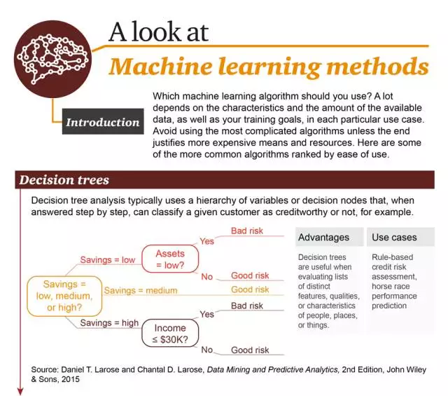 - 1. 决策树(Decision Tree):在进行逐步应答过程中,典型的决策树分析会使用分层变量或决策节点,例如,可将一个给定用户分类成信用可靠或不可靠。