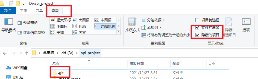 在项目的路径下执行 git init命令,会生成一个.git文件,如果没有这个文件可把查看隐藏的项目打开就可看到.git隐藏文件