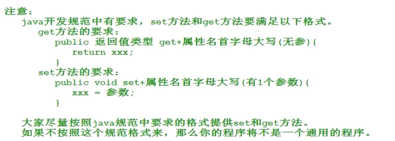 3.形成规范,每一次在类中编写不适合被外界直接访问的属性时,一律按照套路把属性设为私有,生成set和get方法