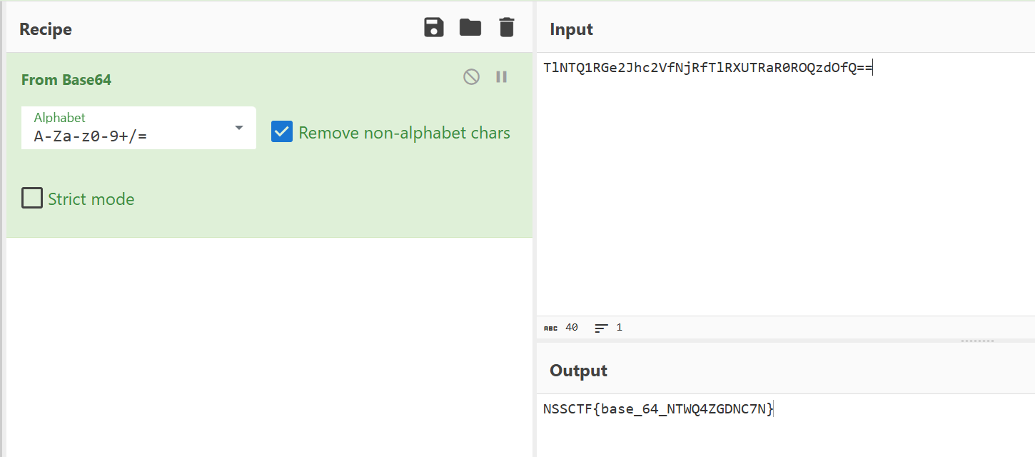 启动加密解密网站From Base64 - CyberChef,拖入Form Base64,就可以得到flag。
