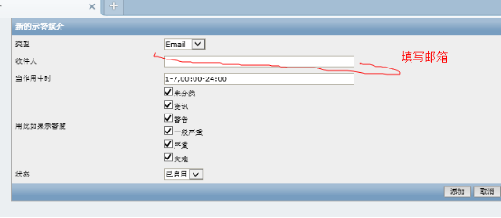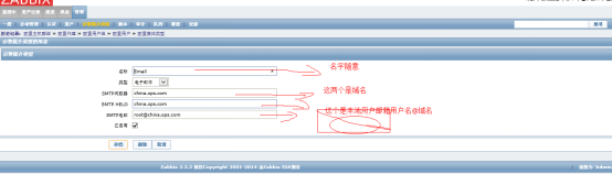 administration=>Users(zabbix administrators组)=>点击admin配置Media参数,