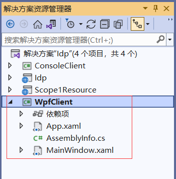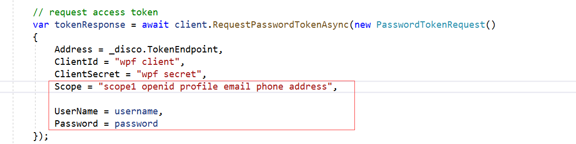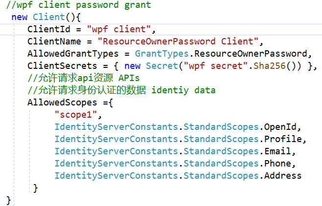 客户端需要配置用户名密码以及需要访问的Identity资源