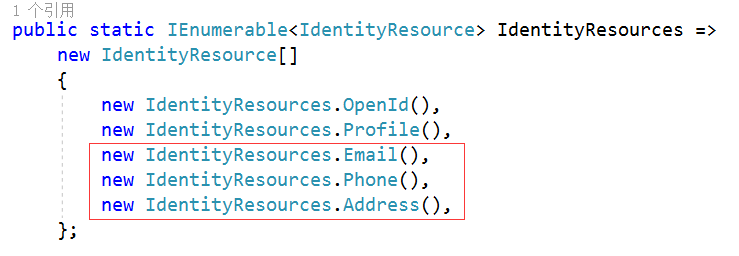 这里为了可以更多的访问Identity资源,把email phone address 都配置上