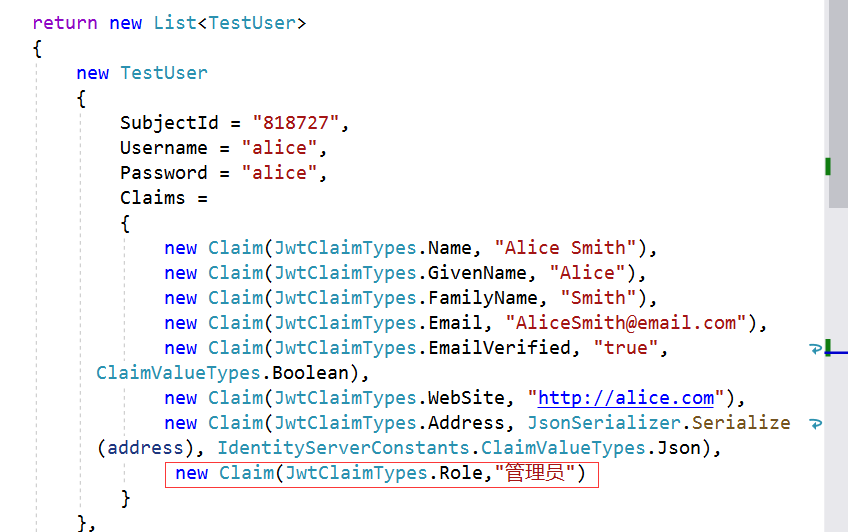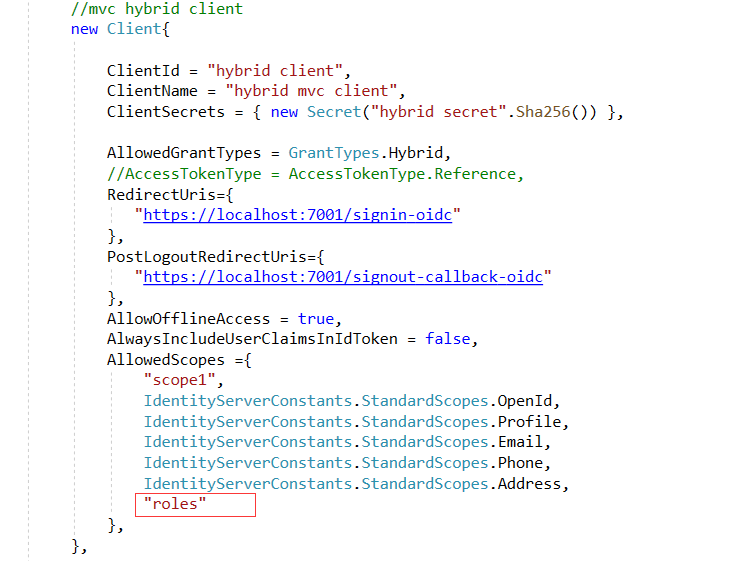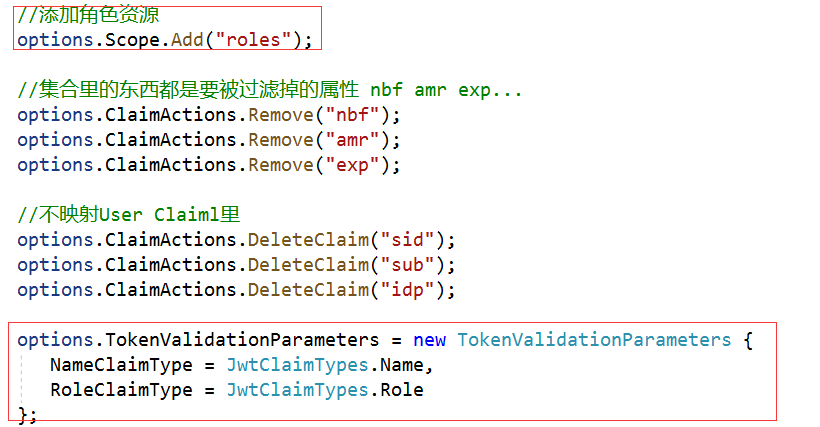 (2)增加需要访问的roles资源并且将Cliam的Role和Mvc的Role进行映射
