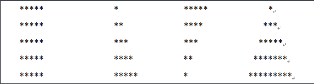 - 使用双重for循环分别打印以下图案