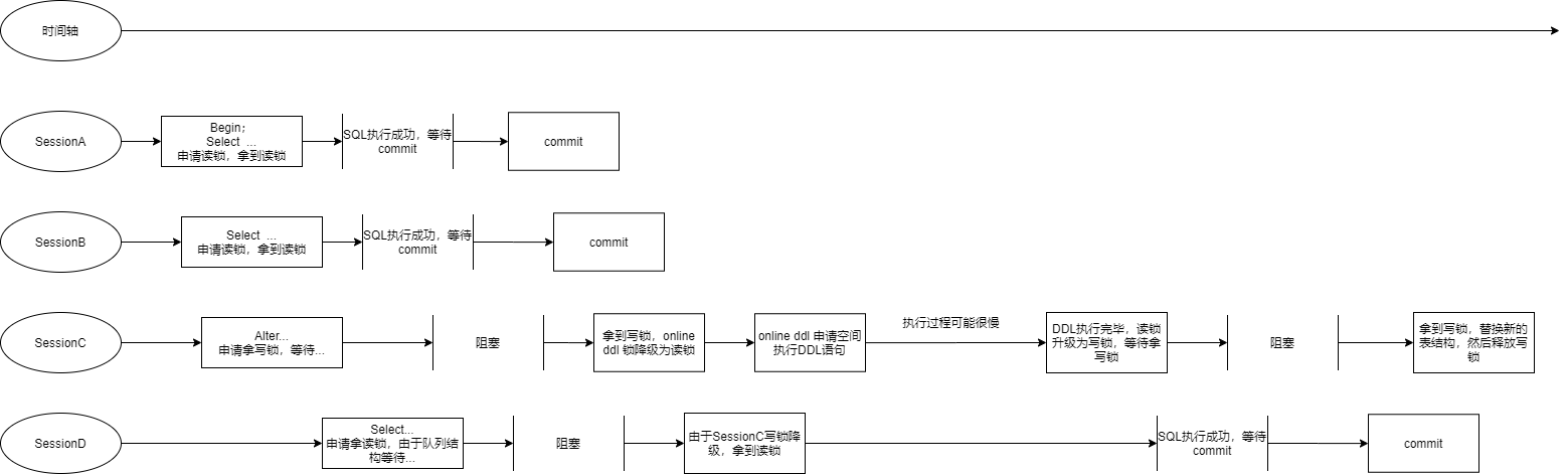 - 申请拿到MDL锁后直到提交后才会释放该MDL锁