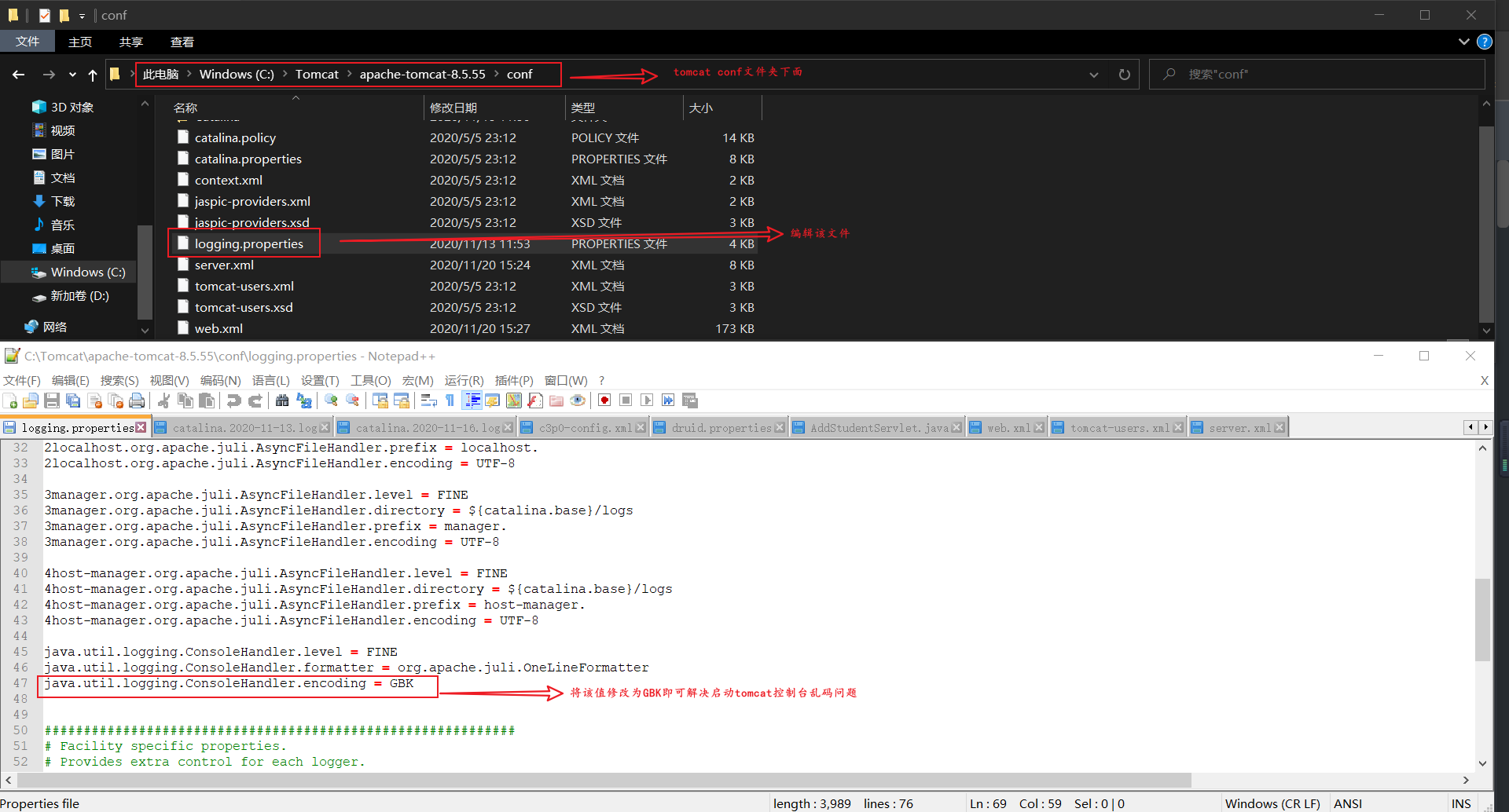 控制台(gbk)和tomcat(utf-8)编码方式不一样