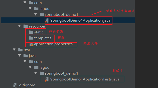 生成项目启动类、存放前端静态资源和页面的文件夹、编写项目配置的配置文件以及进行项目单元测试的测试类