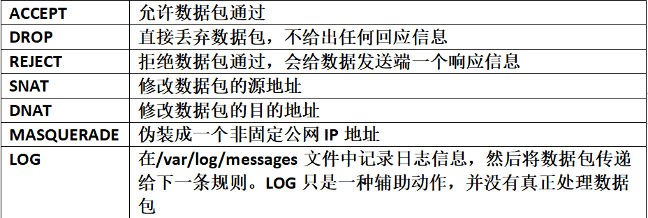 若在该链内找不到相匹配的规则,则按该链的默认策略处理(未修改的状况下,默认策略为允许)